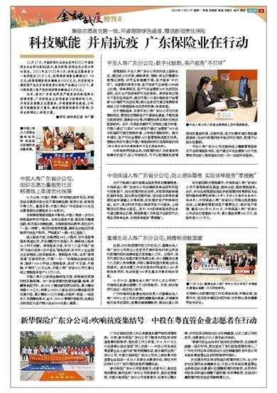 近来,面对广东多地再度严峻复杂的新冠肺炎疫情形势,广东保险业主动积极参与疫情防控工作,开展各类捐赠及志愿服务,开通理赔绿色通道,以科技手段赋能客户服务,确保疫情期间服务不断档,为抗击疫情注入保险力量。