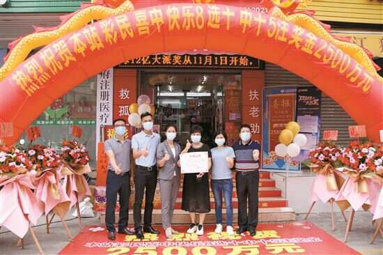 11月21日,江门市江海区外海麻一东冲文化公寓楼110号铺第44120214号投注站龙门气拱横跨福地、鲜花竞放鞭炮齐鸣,引得街坊争相围观。江门市民政局、市福利彩票发行中心,江海区民政局、区福利彩票发行中心共同为该投注站中得快乐8游戏第22305期“选十中十”2500万元大奖举行庆祝宣传活动。江门市民政局党组成员、副局长杨蕾为投注站负责人颁发中奖证书和宣传费奖励。