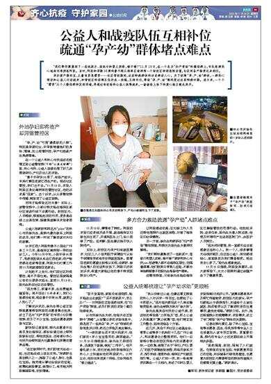 孕妇预产期将至、儿童有紧急需要……社区管控期间,这些特殊群体的诉求牵动人心。为了保障“孕、产、幼”群体,一群热心街坊和公益人行动起来,和管控区的保障队伍拧成一股绳,互相补位,帮助“孕、产、幼”顺利度过这段特殊时期。连日来,一个个“需要”从个人微信群转发到网端,再通过有经验的公益人统筹起来,一场场线上线下的爱心接力就此展开。