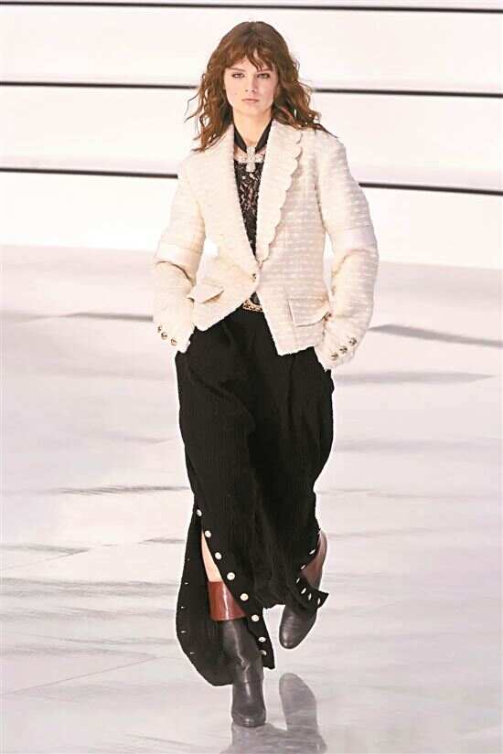 今年爱马仕秋冬时装秀中麂皮靴与过膝袜的叠穿十分亮眼,上衣选复古感皮衣或毛呢外套,既保暖又时髦,整体造型也显得更富有质感。