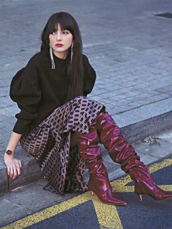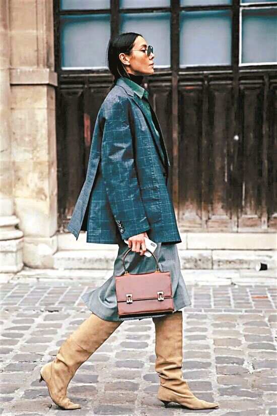 ▲相较前两年流行的弹力过膝靴,今年更流行筒口较宽的款式,但筒口过大的靴款时尚但不日常,建议选略微宽松的即可。