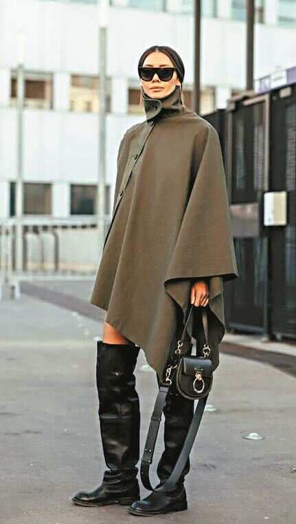 ▲去年流行将宽松过膝靴当“堆堆靴”穿,高低错落的穿法丰富了造型的层次,更有设计感,但也增加了难度,容易显累赘。