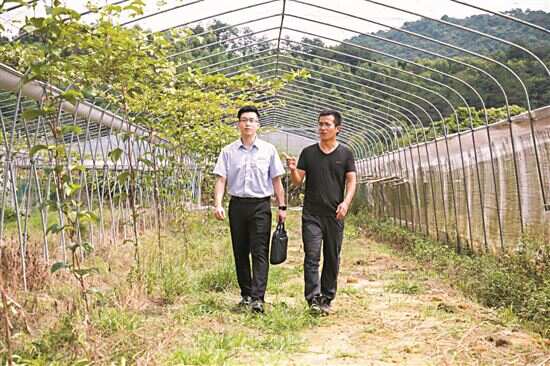 ■农场主带领邮储银行广州市分行客户经理参观果园。