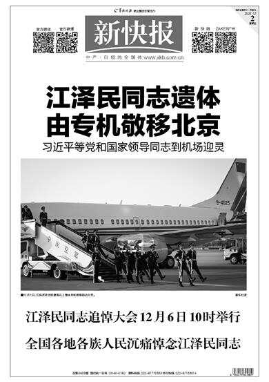 ■12月1日,江泽民同志的遗体从上海由专机敬移到达北京。新华社发