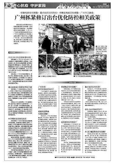 高风险区如何精准划定?核酸检测策略有何调整?疫苗接种怎样持续推进?来返穗政策是否有新的调整?12月1日,广州举行疫情防控新闻发布会,广州市卫健委副主任张屹就上述等问题作了相关介绍,并透露广州正进一步优化完善防控措施,各相关部门正抓紧修订出台相关政策,尽快恢复正常生产生活秩序。