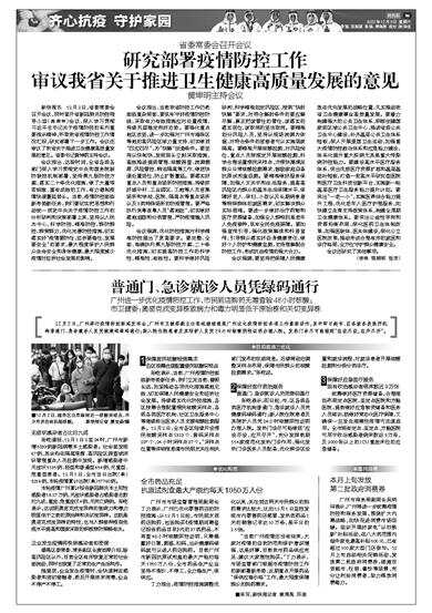 新快报讯 12月2日,省委常委会召开会议,同时套开省新冠肺炎防控领导小组(指挥部)会议,深入学习贯彻习近平总书记关于疫情防控的系列重要指示精神,听取我省疫情防控工作情况汇报,研究部署下一步工作。会议还审议了我省关于推进卫生健康高质量发展的意见。省委书记黄坤明主持会议。