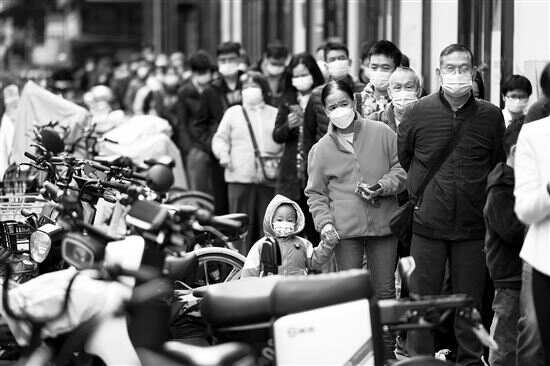 ■12月2日,越秀区北京路附近一核酸采样点,不少市民在排队做核酸。新快报记者 夏世焱/摄