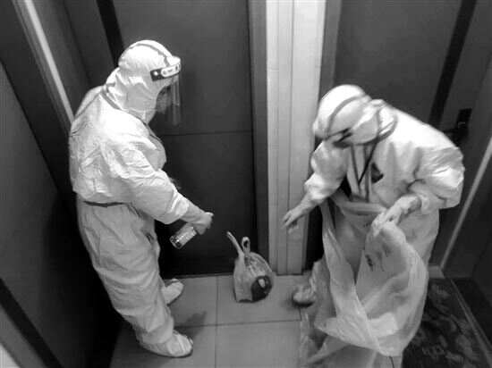 “我们两至三个人为一组,每户每日收运两次垃圾,所以楼层较高也能相互照应着。垃圾放在黄色医疗垃圾袋后会消杀一次,然后套在编织袋中再消杀一次,两次消杀为的就是避免病毒传播风险。”梁光宁告诉新快报记者,收运过程中,轻拿轻放也是需要注意的重点。他们要避免垃圾中的尖锐的物体导致袋子破损,这样会存在传播风险。