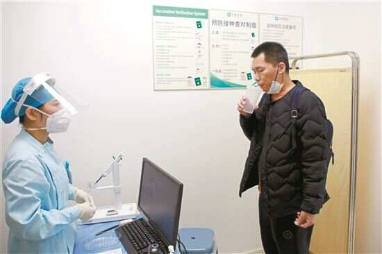 ■8日上午,广州番禺区祈福医院迎来了接种吸入式新冠疫苗的首批市民。新快报记者 毕志毅/摄