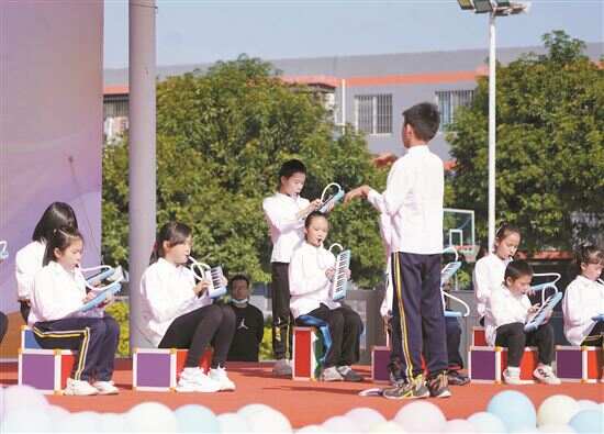 新快报讯 记者陆妍思 通讯员何嘉宁 薜屏报道 走进东莞企石新域学校,只见孩子们手持口风琴正在舞台上共同演奏歌曲《虫儿飞》……12月7日,东莞市福彩育苗计划秋季班(企石班)的80位同学轮番走上舞台,展示他们所学的才艺。