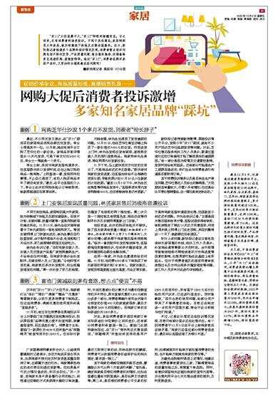 “双11”大促落幕不久,“双12”转眼间接踵而至。与之而来,还有消费者的诸多投诉。不同于其他商品,家居特别是大件家居,较为依赖线下体验及后期安装服务。近日,新快报记者梳理多个品牌的投诉情况发现,消费者重点投诉问题包括不按时发货、产品质量问题、售后服务拖沓、促销套路多且退差价难、虚假宣传等。临近“双12”,消费者在购买家居产品时,又要如何合理规避这些问题呢?