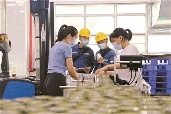 阳光灿烂,宽敞的工厂楼顶上,排列整齐的光伏面板闪着银光,源源不断地产生清洁绿色电能;饼香四溢,忙碌的流水线上,新鲜出炉的月饼糕点正冒着热气,一个个排着队等待机器自动包装;机器轰鸣,整洁的无人车间内,机械手臂来回舞动,传输履带一刻不停,自动化生产线快速运转……