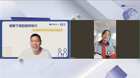 ■满天星公益的捐赠人和贵州一所小学的学生连线,了解公益项目援建图书馆的成效。