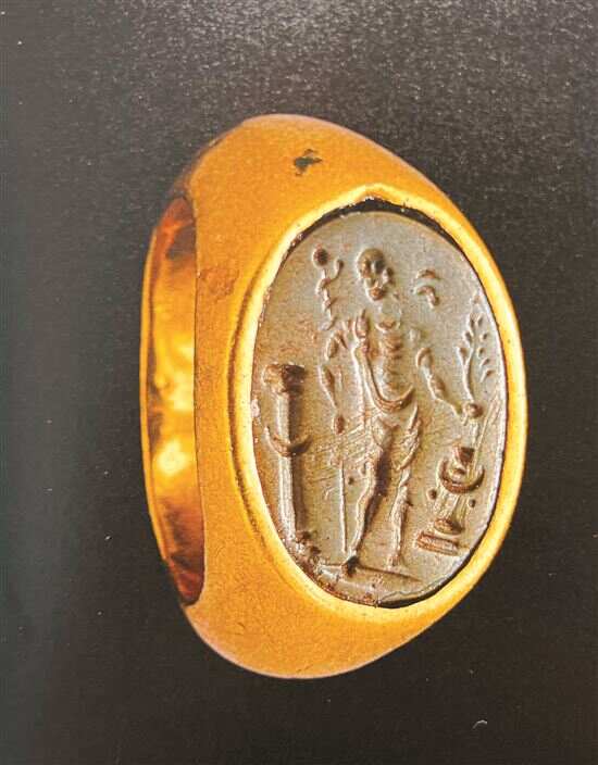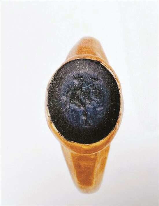 ■“丽达与天鹅”的宝石凹雕黄金戒指,约公元1-2世纪,古罗马珠宝。