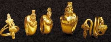 ■戒指一组,公元前1世纪-公元1世纪,塞拉皮斯和伊西斯胸像造型,古埃及。