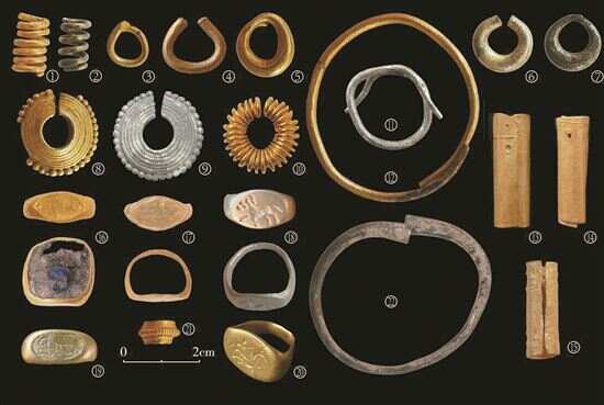 ▲波赫不同墓葬出土的黄金饰品。其中图片部分为戒指。