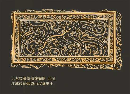■西汉,云龙纹漆笥盖线描图,江苏仪征烟袋山汉墓出土。