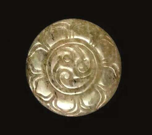 ◀战国,圆形青玉片饰,河北平山中山王墓出土