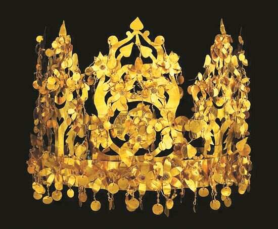■王冠,蒂拉丘地6号墓,公元25年-50年,金、仿制绿松石,45.0×13.0cm