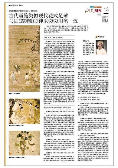 近日,世界杯淘汰赛进入高潮,成为大家关注的焦点话题。不过你可知道,中国古代也有一个类似足球的运动——蹴鞠,并在很多文献中留下印记。就这个话题,故宫博物院首席模搨官常保立接受了新快报记者采访,独家分享了他的研究。