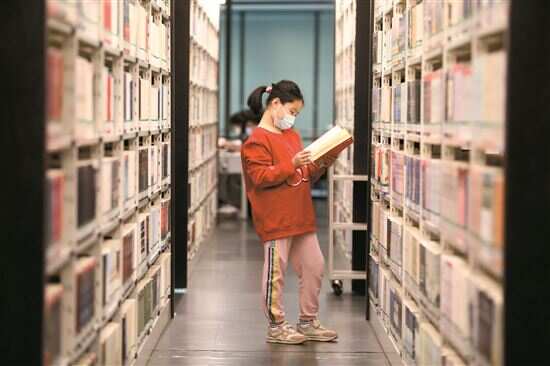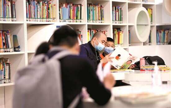 ■市内的一家图书馆内,读者忙着“充电”。