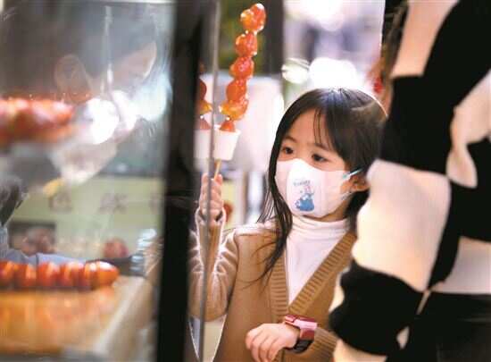 ■在西关永庆坊,有家长带着孩子散步。