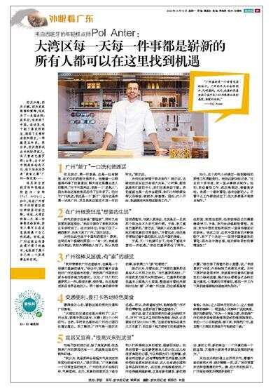 “广州真的是一个非常宜居的地方。广州的冬天不会特别冷,气候湿润。此外,我真的很喜欢这个城市和人们所展现出来的感觉,温暖而活跃。”——Pol Anter