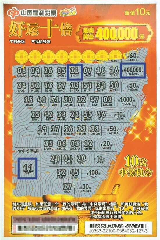 新快报讯 记者陆妍思 通讯员袁苏华报道 刮刮乐“好运十倍”是一款经典的数字游戏型彩票,票面喜庆,玩法简单,被誉为刮刮乐中的经典,可谓是10元票的“人气王”,上市多年深受广大彩民的青睐,而它也不时为彩民们送出幸运和惊喜,用大奖回馈彩民对它的喜爱。近日,佛山投注站传出喜讯:刮刮乐“铁粉”幸运刮中“好运十倍”头奖40万元!当“人气王”遇上刮刮乐“铁粉”,到底会擦出怎样的火花?