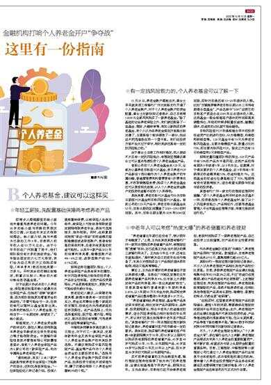 11月25日,养老金账户落地当天,秦女士早早就来到工商银行广州北京路支行开通了个人养老金账户,对于个人养老金账户的资金配置,秦女士对新快报记者表示,自己目前将12000元全部用来购买了一款养老基金。“除了基础的社会养老保险之外,我们家还配备了一些基金、理财、大额存单等,再加上新购买的养老基金,我个人认为在养老金规划方面是比较完善了,主要是每个板块都放了一部分,俗话说不把鸡蛋放在同一个篮子里。我们在投资方面不会太过于保守,相对来讲还是有一定的抗风险能力的。”