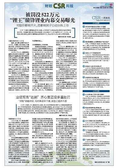 12月7日晚间,赣锋锂业发布公告称,公司收到了江西证监局出具的《行政处罚事先告知书》。因涉嫌内幕交易江特电机股票,公司及相关个人共计被罚没522.12万元。新快报记者注意到,该事件对赣锋锂业股价影响不大,但会对其子公司分拆上市带来阻碍。