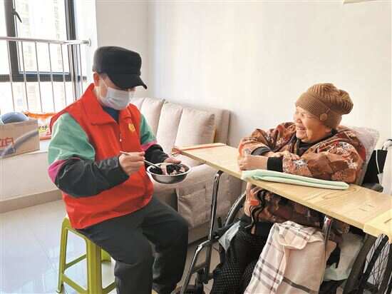 ■护理员邓叔接陈婆婆到自己家吃饭,因为两人住得近,照顾起来比较方便。