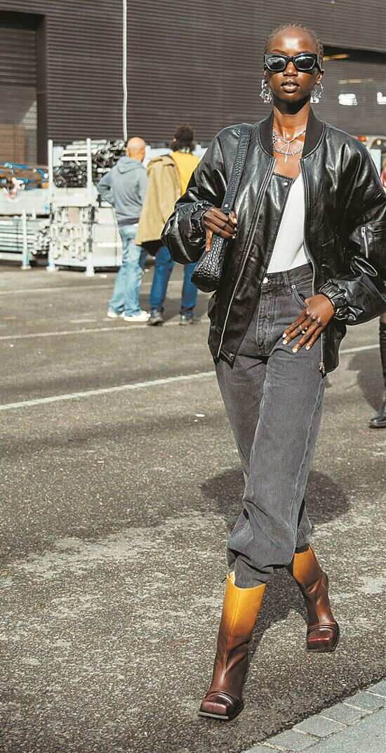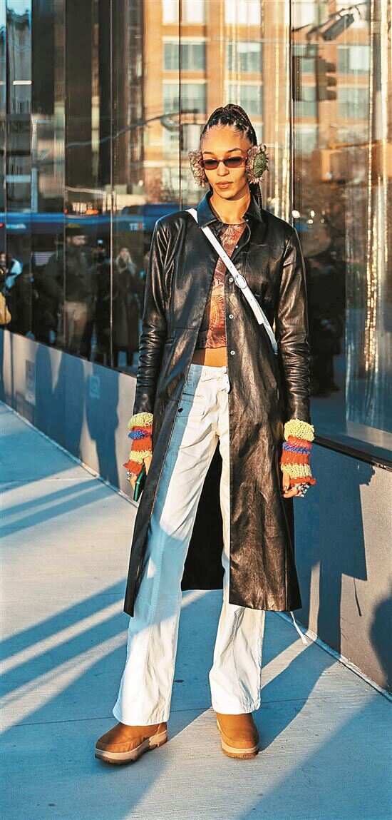 ▲今年更流行中长款,是那种长度在腰间或刚好能包住胯部位置的皮衣,即使是胯宽的时髦精穿起来也毫无压力。