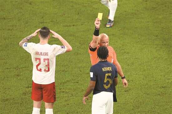 本届世界杯上,马齐尼亚克已执法过两场比赛,就是阿根廷对澳大利亚的1/8决赛(上图左为马齐尼亚克)和法国对丹麦的小组赛(手举黄牌者)。这两场比赛阿根廷和法国都赢得了比赛。新华社发