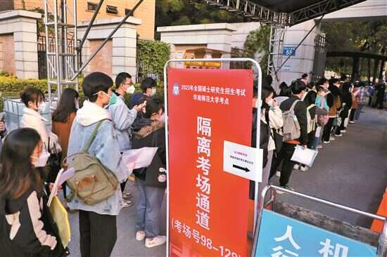 ■12月24日,2023年全国硕士研究生招生考试正式开考。早上7时许,华南师范大学考点陆续有考生到达,考生按不同通道有序进入考点,考场号98-128的考生从隔离考场通道前往考场。 新快报记者 李小萌/摄
