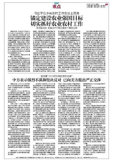 据新华社电 12月24日,外交部发言人就美签署“2023财年国防授权法案”答记者问。