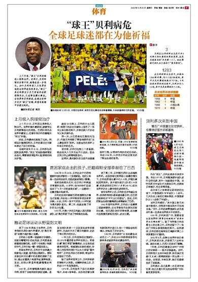 上个月29日,贝利因全身肿胀入院治疗。世界杯淘汰赛期间,就曾传出贝利病情恶化的消息。巴西队球员在世界杯赛场上,还曾手持贝利的横幅为“球王”祈福。