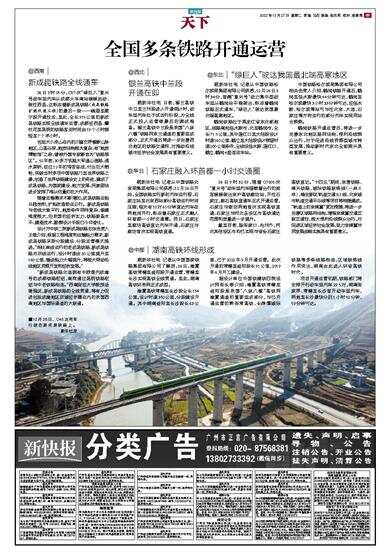 据新华社电 记者从中国铁路北京局集团有限公司获悉,12月26日开始,全国铁路实行新的列车运行图,石家庄站至北京西站部分高铁运行时间压缩,每天有10对60分钟直达列车在两地间开行,标志着石家庄正式融入环首都一小时交通圈。同日,石家庄至廊坊高铁直达列车开通,石家庄与廊坊首次实现高铁直通。