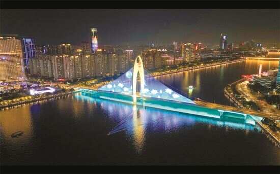 ■12月27日晚,第十一届广州国际灯光节在线上“云看灯光节”正式亮灯,今年灯光节以“粤韵光彩·未来创想”为主题,为期13天。新快报记者 李小萌/摄