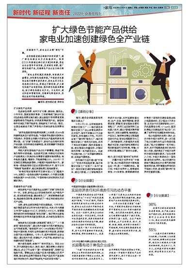 “家电业要把握发展趋势,有效满足市场需求,加快绿色低碳转型。”中国家用电器协会执行理事长姜风表示,家电业是与民生息息相关的行业,要通过不断创新,扩大绿色低碳产品有效供给,倡导绿色低碳消费理念,助力绿色低碳生活方式。与此同时,通过科技和管理创新,完善绿色制造体系,实现全流程节能减排降碳。