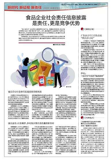 “民以食为天”,食品是民生最重要的支柱产业。随着经济的发展,民众对食品的需求已经从“求饱”提升到“吃好”。如今,越来越多的企业感受到了这种社会需求的变化,开始有意识地将自身商业活动与社会问题相结合,通过履行社会责任,在满足社会需求的同时获得核心竞争力。