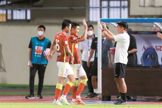2022.08.21 8月,郑智代替刘智宇出任广州队主帅。在他的回归首秀中,广州队主场4:1大胜深圳队,进球球员韦世豪与郑智兴奋击掌。12月27日,广州队1:4不敌长春亚泰,昔日中超八冠王提前一轮降级。 新快报记者 毕志毅/摄