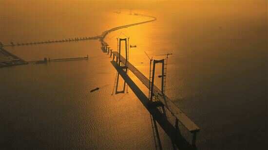 2022.09.03 深中通道建设正在如火如荼地进行,朝阳照耀下的深中通道像一条蜿蜒的海上巨龙,异常壮观。2024年建成通车后,从深圳到中山只需30分钟。新快报记者 夏世焱/摄
