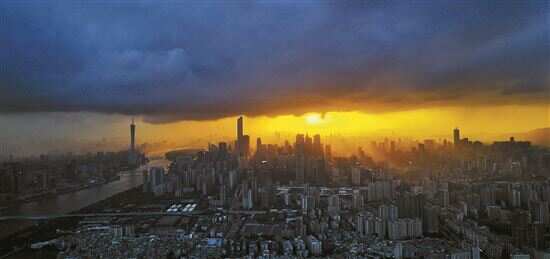 2022.08.26 受第7号台风“木兰”的影响,广州频繁出现大风暴雨天气。傍晚时分,霞光从厚重的乌云中间穿过,将城市高楼的轮廓勾勒得异常梦幻。新快报记者 夏世焱/摄