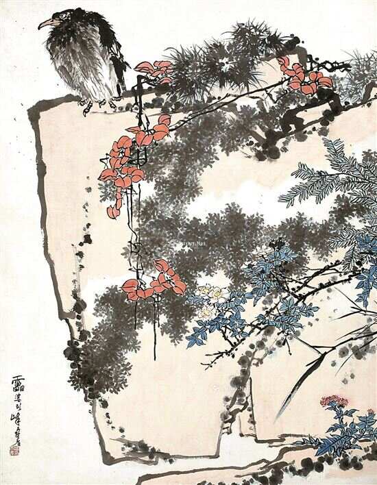 ■作潘天寿的《鹰石山花图》在中国嘉德2015春季拍卖会以2.79 亿元人民币刷新了潘天寿画作拍卖纪录。