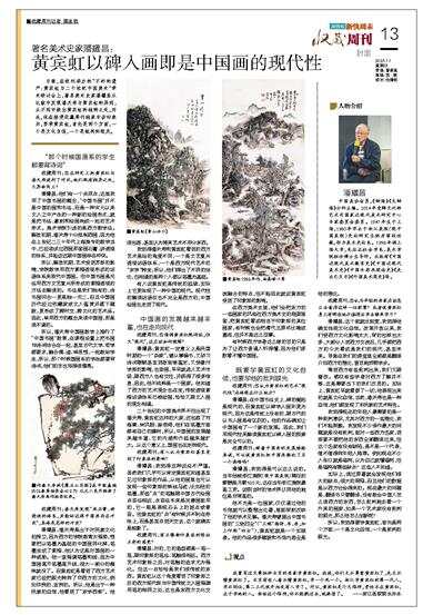 二十世纪的中国美术界不但出现了潘天寿、黄宾虹这样的大家,还包容了刘海粟、林风眠、徐悲鸿,他们在笔墨方面都有自己的建树,所以,中国画的发展越来越丰富,它的内涵和外延越来越扩大。从这个意义上,国画也在走向现代。