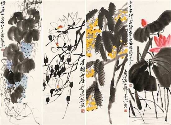 ■齐白石《花果四屏》,崇正拍卖517.5万元成交