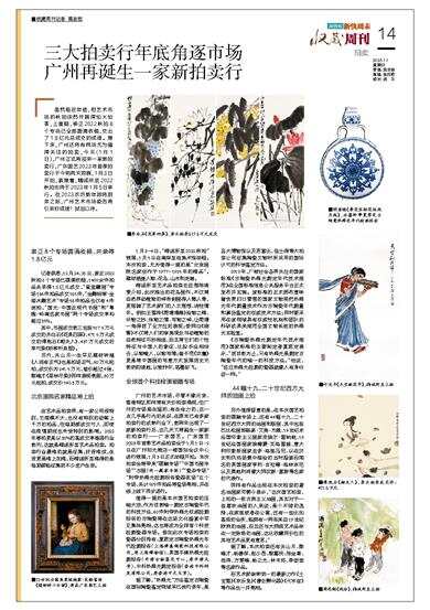虽然临近年底,但艺术市场的秋拍依然开展得如火如荼,上星期,崇正2022秋拍8个专场已全部圆满收槌,交出了1.8亿元总成交的成绩。接下来,广州还将有两场尤为值得关注的拍卖,今天(1月1日),广州正式再迎来一家新拍卖行,广东国艺2023年首季拍卖行于今明两天预展,1月3日开拍,紧接着,精诚所至2022秋拍也将于2023年1月5日举行。在2023农历新年即将到来之际,广州艺术市场能否再引来好成绩?拭目以待。