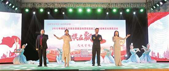 新快报讯 记者农艳芳报道 “党旗在飘扬——2022年揭阳市文旅志愿者宣传贯彻党的二十大精神文化惠民活动”日前在揭阳各地举行,文旅志愿者走进社区、农村基层,将党的二十大精神带到群众中去,用精彩的文艺表演为基层群众带去丰富的精神食粮。