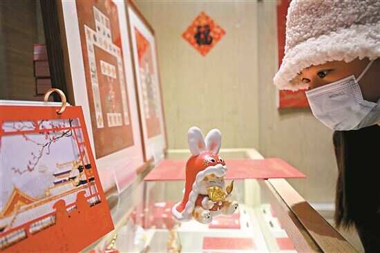 ■1月1日,游客在故宫绛雪轩文创商店内选购商品。当日,故宫博物院预约参观数量达到3万人。新华社发