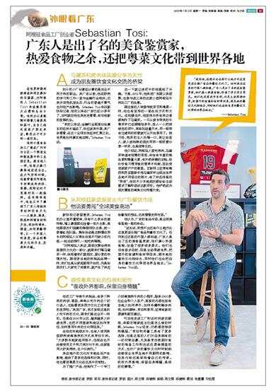 “说实话,我想不出还有什么地方比这里更适合推广食品和餐饮文化了。任何来过这里的外国人都知道,广东人是出了名的美食鉴赏家,他们真心热爱食物,创造了很多很多菜式。他们也没有故步自封,而是主动周游世界,把国外的食谱和食材带回来,跟本地的餐饮文化相结合,同时他们也会把自身的餐饮文化带到世界各地去。”Sebastian Tosi说。